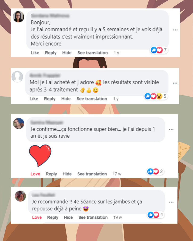 La repousse des poils est considérablement ralentie après chaque traitement, avec des résultats visibles en seulement 2 semaines.